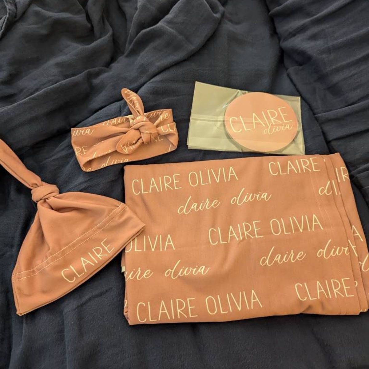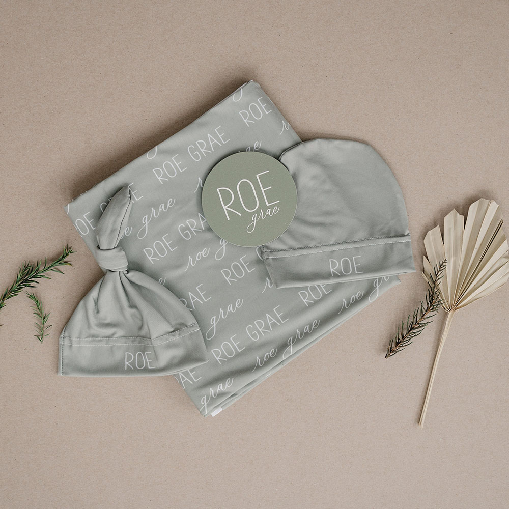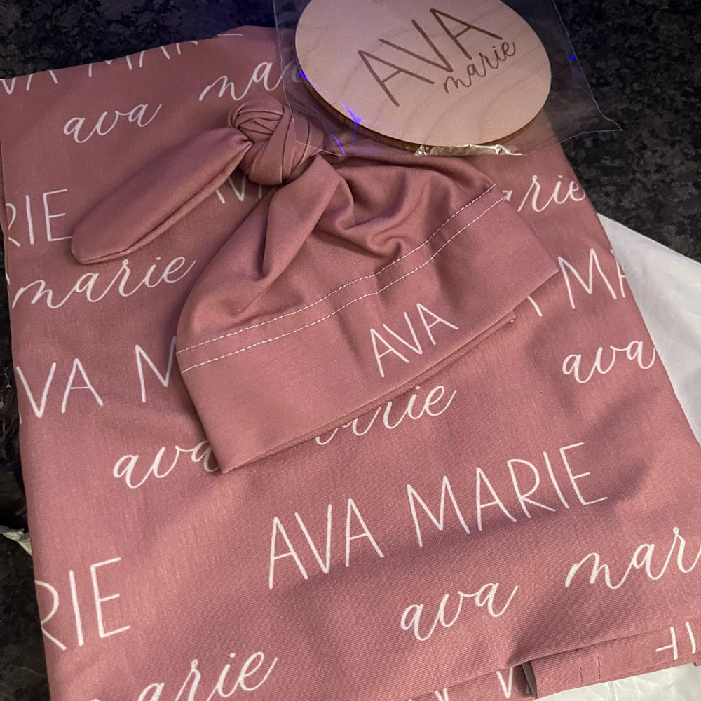 Custom Baby Name Swaddle Blanket Set, Newborn Coming Home Nursery Outfit with Wooden Name Announcement Sign, Baby Shower/Birthday Gift for Newborns