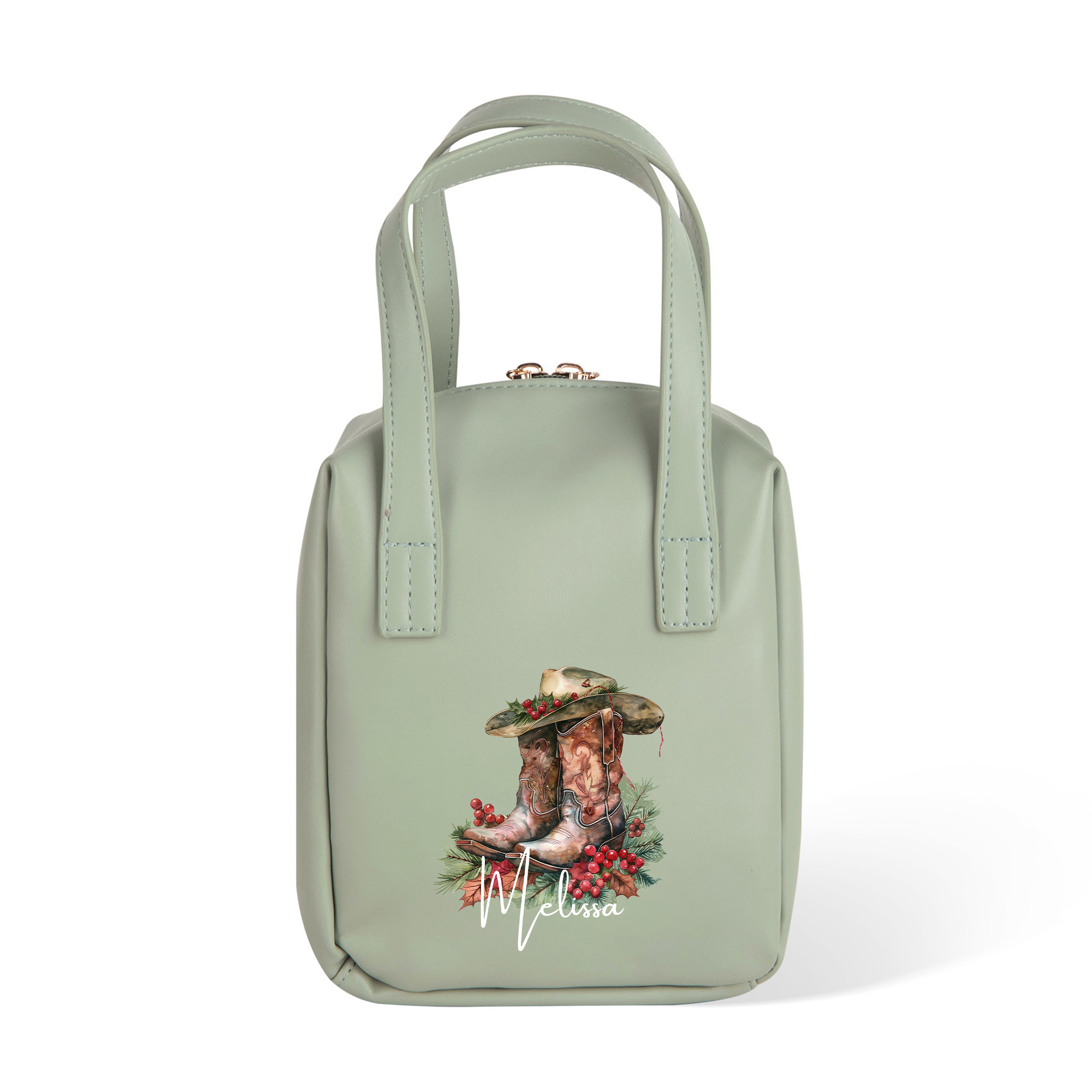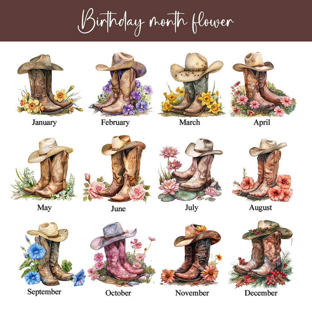 Floral Cowgirl Boots Design - This cosmetic bag showcases a charming cowgirl boots design accented with soft birth flowers, bringing a refined and playful look that goes beyond a simple travel pouch.