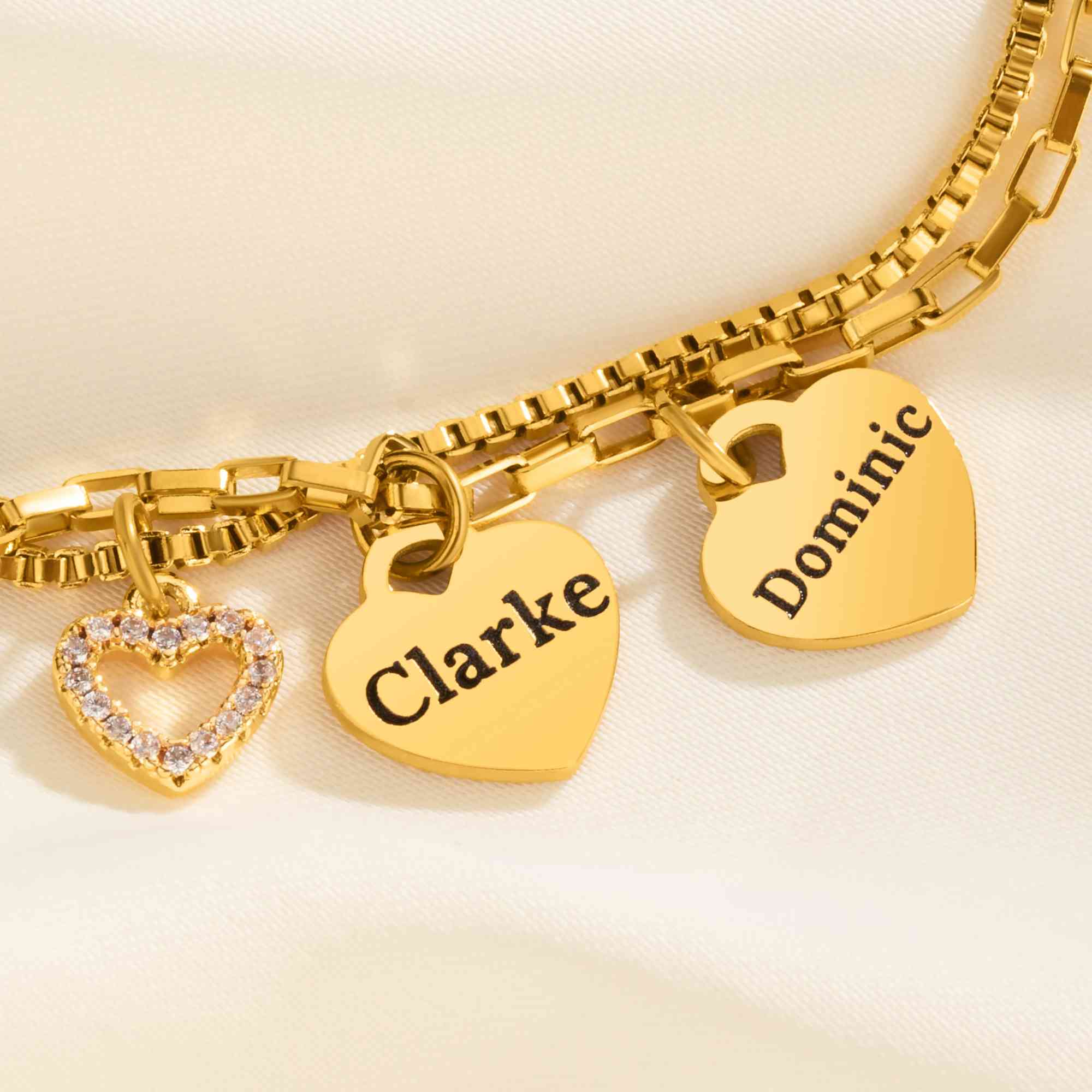 Personalized - Featuring a stylish double chain design for a stylish double chain, this beautiful bracelet can be customized with 1-6 heart-shaped charms, each with the name of a family member, making it a touching piece of family jewelry.