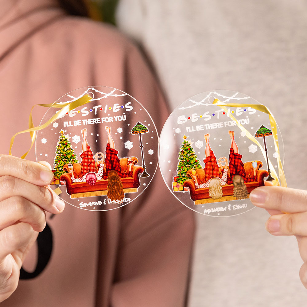 • Personalized Besties Christmas Ornament, Two Girls on Couch Acrylic Christmas Tree Decor, Friendship Keepsake, Christmas Gift for Sisters/Best Friends